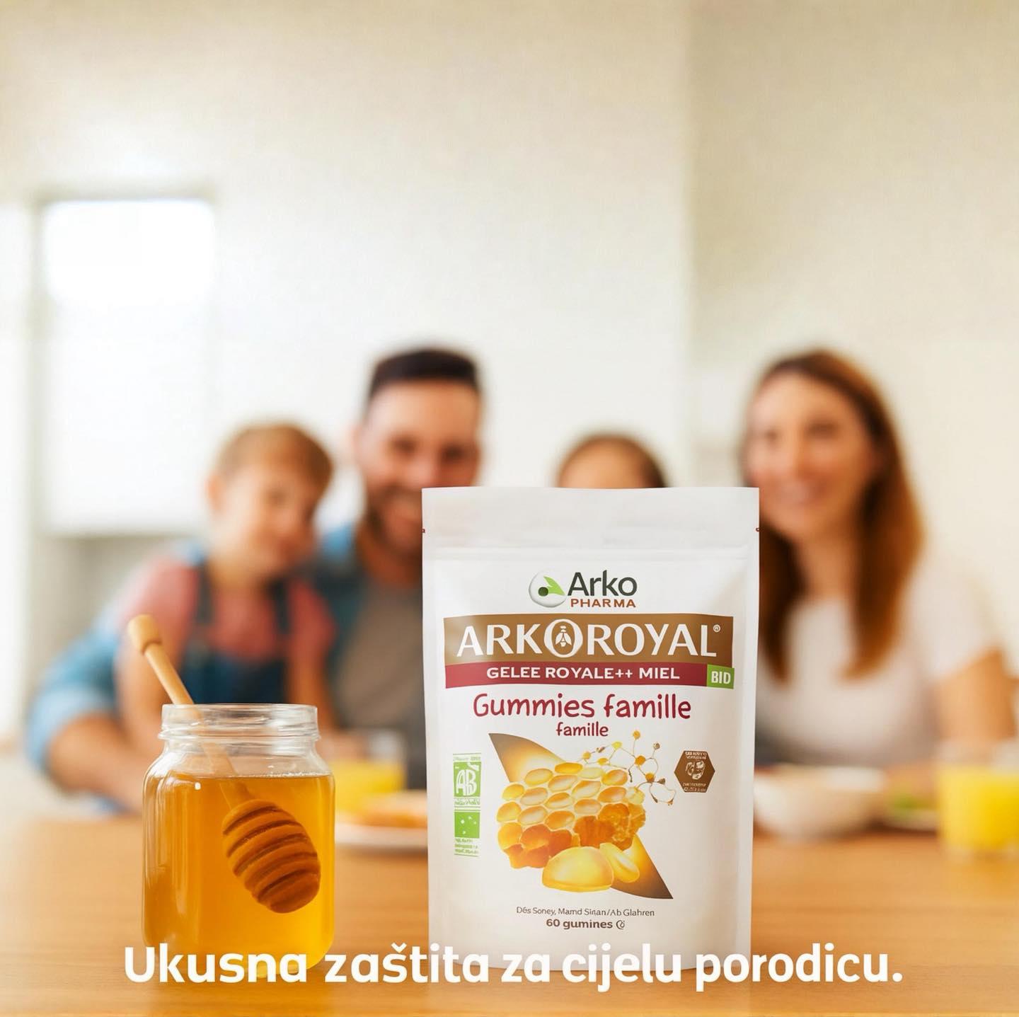 Od sada na tržištu Bosne i Hercegovine dostupan je i novi preparat Arko Royal Gumene bombone za cijelu porodicu. Konačno kompletiran proizvod koji će jačati imunitet cijele porodice, za najmlađe i najstarije. Gumene bombone sa prirodnim voćnim  pektinom,  i prirodnim okusom narandže i medom mališanima će uljepšati dan, a odraslim okrijepiti imunitet za nove borbe. Organski preparat pripremljen i proizvoden u Francuskoj, sa certifiktom organskog porijekla, kao i ostali preparati iz linije Arko Royal matične mliječi.